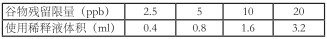 1. 谷物:任取 5g 以上有代表性樣品并粉碎過 20 目篩,準(zhǔn)確稱取 2.0g 均勻粉碎試樣于配套離心管中,再準(zhǔn)確加入 4ml 純凈水和 4.0ml 乙酸乙酯,將瓶塞蓋緊密封,充分振蕩 5min,4000rpm 離心 1min 得上清液,將上清液用吸管移出 2.0ml 到蒸發(fā)皿或小玻璃杯中,用電吹風(fēng)吹干上清液,再根據(jù)樣品的種類按以下規(guī)定的稀釋液量,用鋁箔袋內(nèi)配套吸管反復(fù)沖洗,徹底溶解杯底所有的固體,此溶解液為樣品提取液即檢測液。考慮不同樣品對黃曲霉毒素 B1 的最高含量要求,請參考下表進(jìn)行用稀釋液溶解杯底固體: