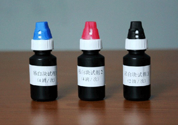 2. 取1mL上清液至1.5ml離心管中,加入4滴試劑1,4滴試劑2,蓋塞后混勻,1分鐘后,加2滴試劑3,搖勻,5~10分鐘內(nèi)與標(biāo)準(zhǔn)比色卡進行顏色比對。