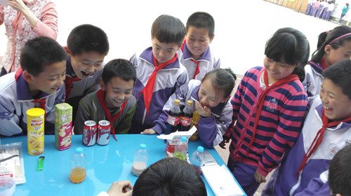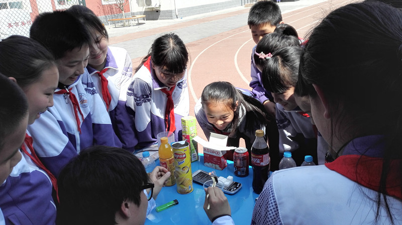 校園食育展覽,是2015北京市教委創(chuàng)新人才培養(yǎng)項(xiàng)目之—,“由食物認(rèn)識(shí)自我,探索世界”。本次展覽主要分為參觀食安知識(shí)海報(bào)和參觀食安快檢實(shí)驗(yàn)兩部分,我們準(zhǔn)備的5個(gè)實(shí)驗(yàn):亞硝酸鹽超標(biāo)食品檢測(cè)、經(jīng)二氧化硫漂白食品的檢測(cè)、地溝油和安全食用油的鑒別、奶茶和橙汁的勾兌制作以及可樂(lè)含糖量和薯片含油量實(shí)驗(yàn),深受小學(xué)生們的喜愛(ài)。