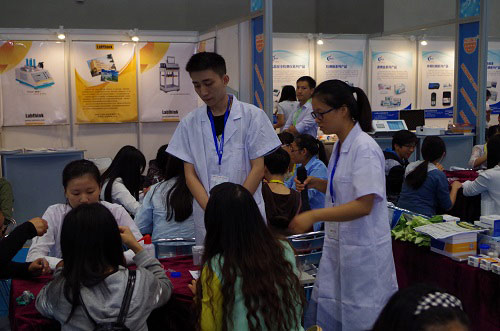 下午由北京智云達(dá)科技有限公司在N3展館的食品安全與質(zhì)量檢測(cè)體驗(yàn)互動(dòng)示范區(qū)做快檢實(shí)操培訓(xùn),技術(shù)人員主要帶領(lǐng)大家做“地溝油”檢測(cè)、粉絲、銀耳、冰糖中二氧化硫的快速檢測(cè)、蔬菜中的農(nóng)藥殘留檢測(cè)、牛奶中的三聚氰胺檢測(cè)、瘦肉中“瘦肉精”的快速檢測(cè)等實(shí)驗(yàn)。通過帶領(lǐng)大家親自動(dòng)手操作,讓大家進(jìn)一步了解快檢,體會(huì)到快檢的優(yōu)勢(shì)。