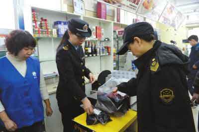 執(zhí)法人員對(duì)全時(shí)便利店檢查。京華時(shí)報(bào)記者呂高見攝