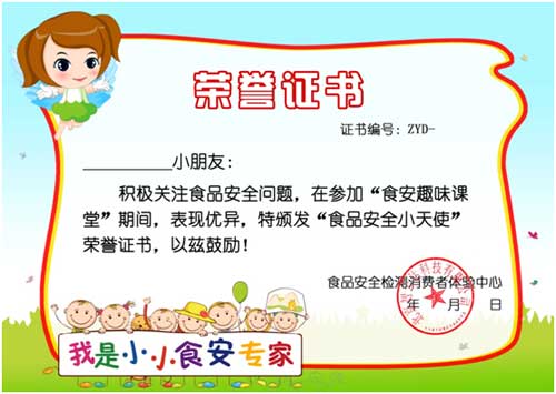 活動結束后,我們體驗中心的老師還為參加活動的同學準備了食安天使小證書。我們的趣味課堂不是要大家不要吃零食,遠離帶有色彩的食品,而是讓大家知道這些食品中可能隱藏的健康危害,適量食用,最后同學們都收獲滿滿。