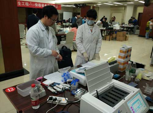 本次驗證活動,包括多位食藥監管理人員、媒體朋友,20余家快速檢測企業及技術人員參加,北京智云達科技股份有限公司也在本次投標的現場驗證企業之中。活動的開展通過現場檢測、現場考核、比對實驗等方式,向下屬食藥監部門推薦檢測效果好、檢測時間短、檢測方法便攜的投標企業。