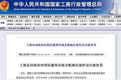 新華網(wǎng)北京11月16日電(記者婁奕娟)11月16日,國家工商行政管理總局官網(wǎng)發(fā)布處罰決定書稱,2009-2013年期間利樂集團(tuán)(簡稱利樂)有關(guān)企業(yè)濫用市場支配地位案件,對其依法作出行政處罰,其中處罰款近6.68億元人民幣。