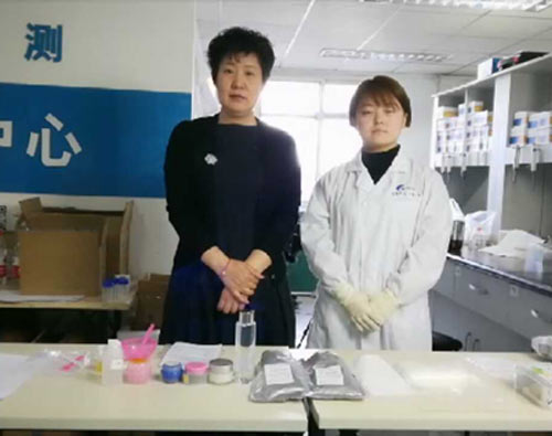 北京智云達技術工程師王老師首先對樣品取樣,再通過使用北京智云達自主研發生產的快速檢測產品:化妝品中重金屬汞快篩試紙盒,對樣品溶液進行檢測。