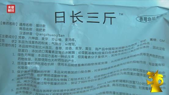 日長三斤,是河南漯河宇信科技有限公司的主打產品之一,適用于雞鴨豬魚蝦等多種動物,產品包裝顯示,這是一個以黨參、六神曲等組成的純中藥制劑,然而公司負責人承認,這里面實際也有西藥成分。