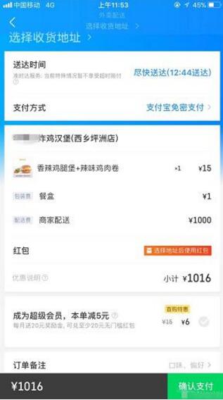 “剛開始是20元,后來又上調到了100元,結果發現,100元的時候還是有人點單,我們就干脆調到了1000元,一直到閉店和外賣平臺關閉,一共也就有幾十分鐘的時間。”工作人員告訴北青報記者,“我們是自己店的外賣員進行配送,所以可以自己定價,當配送費上調到1000元以后就沒有人再點單了。”該工作人員說,外賣店平日有6、7名配送人員,一般的配送費用依據距離而定,不會超過10元。在16日下午,他們就已經閉店停止配送了,17日上午恢復正常營業,而在配送費標記為1000元的時間段里,并沒有人再繼續點餐。