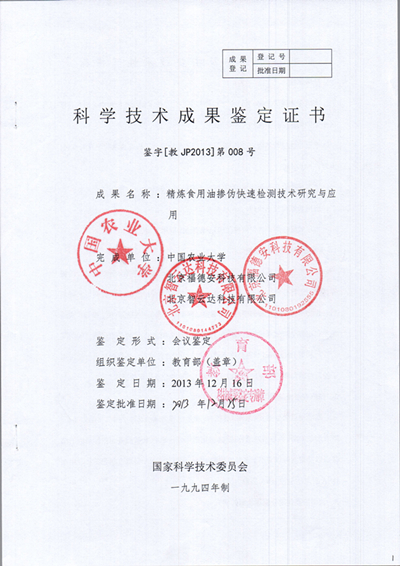 12月16日,由智云達與中國農(nóng)業(yè)大學、福德安共同參與的“果蔬采后農(nóng)藥殘留及微生物快速檢測技術研究與應用”、“精煉食用油摻偽快速檢測技術研究與應用項目”在中國農(nóng)業(yè)大學食品學院會議室參加了教育部組織的科技成果鑒定。
