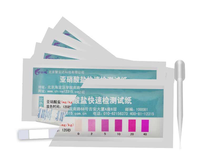 亞硝酸鹽中毒可引起呼吸困難甚至循環(huán)衰竭而死亡,還可與胺類物質(zhì)在適合的條件下形成強(qiáng)致癌物亞硝胺,所以亞硝酸鹽的檢測有著重要的意義。本品適用于食品中亞硝酸鹽的半定量檢測。