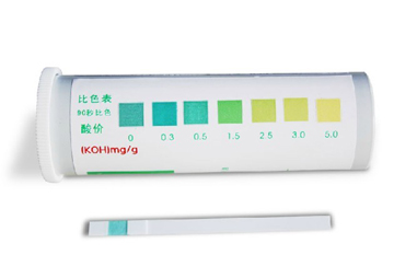 以紙片作為載體做成卡片形式,通過顯色劑與游離脂肪酸或過氧化物進行反應,其在紙片上顯色的程度與游離脂肪酸或過氧化物的含量成正比,以此達到酸價或過氧化值的半定量檢測。