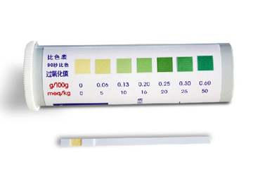 3. 過氧化值測試紙的反應計時視環境溫度而定,在表中規定的時間內比色有效。