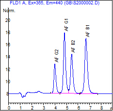本產品的測定的基礎是抗原抗體反應,黃曲霉毒素單克隆抗體連接在柱內凝膠上,樣品中的黃曲霉毒素經過提取、過濾、稀釋,然后將樣品提取液緩慢的通過黃曲霉毒素免疫親和層析柱,在免疫親和柱內,毒素與抗體結合,之后洗滌免疫親和柱除去沒有被結合的其他物質。用甲醇洗脫黃曲霉毒素,然后注入到分析儀器中用于檢測。