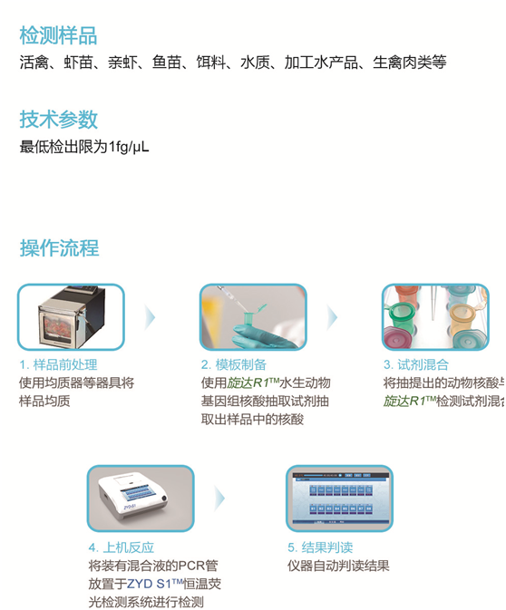 旋達(dá)R1?動物病害檢測系列試劑,基于恒溫擴(kuò)增技術(shù)平臺,以特別設(shè)計的2對特異性識別檢測靶標(biāo)的獨(dú)有基因序列,能快速、準(zhǔn)確地鑒定檢測出樣品中是否含有特定病原體,可對動物病害進(jìn)行有效監(jiān)控,有力地防止疫病的爆發(fā),并且可應(yīng)用于出入境對外來有害生物疫情疫病監(jiān)測。