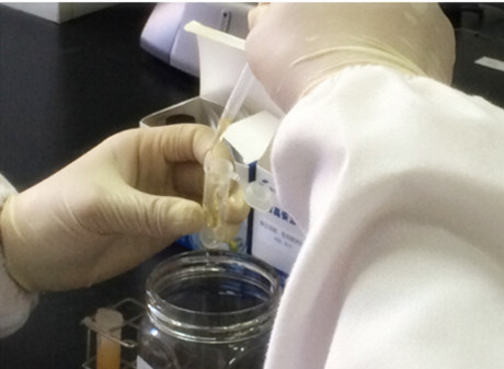 1.用 0.2ml 塑料吸管取蜂蜜樣品滴加 1 滴到離心管中,再加入 2ml 蒸餾水(或純凈水),蓋緊上蓋,上下?lián)u動 30 次。