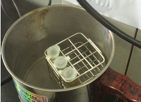 3.將樣品顯色管放入沸水浴中加熱 5 分鐘,取出,再加入 1.5ml 蒸餾水(或純凈水),蓋緊上蓋,上下?lián)u動3次。