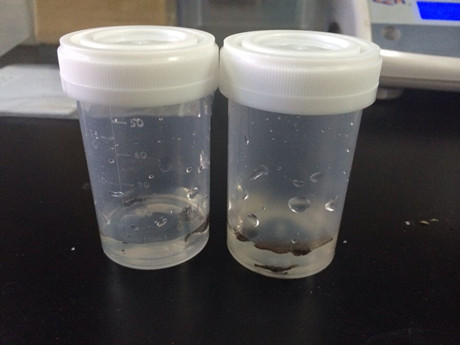 1、 稱取0.1g茶葉樣品于樣品提取瓶中,加8ml農(nóng)殘緩沖液,8ml緩沖液震蕩提取30秒,靜置2分鐘。