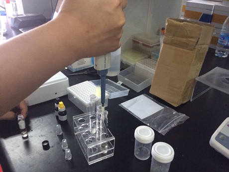 2、 取3根試管,1、2號(hào)試管作為樣品管,3號(hào)為對(duì)照管。在樣品管加入3ml樣品液,在對(duì)照管中加入3ml緩沖液,隨后分別加入20ul顯色劑和50ul酶試劑,蓋塞混勻靜置10min。加入20ul底物,混勻后迅速倒入比色皿,放入農(nóng)殘儀進(jìn)行檢測(cè)。