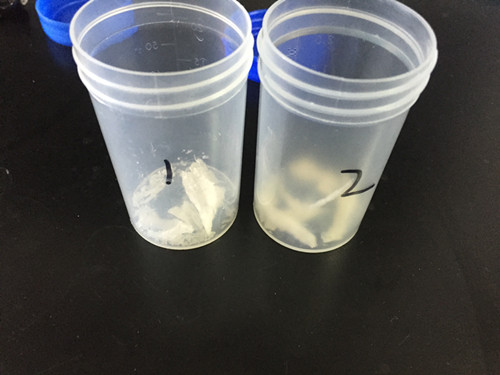 之后在交談過程中,張女士提到北京采購的比香港采購的燕窩顏色更白,猜想是不是漂白過,因此我們加測一組實驗,測試兩類燕窩是不是用二氧化硫進行漂白。