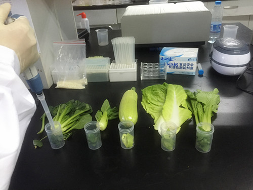 陳女士用于自己的大棚,全綠色無(wú)污染,但是她還是覺(jué)得做個(gè)檢測(cè)會(huì)比較放心,因此她將大棚中現(xiàn)產(chǎn)的幾種蔬菜送到中心進(jìn)行農(nóng)殘檢測(cè)。