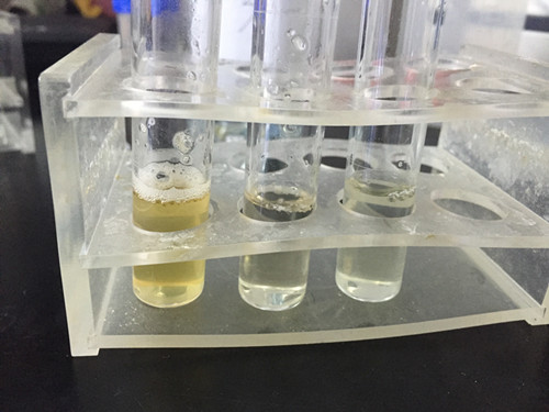 最后觀察實(shí)驗(yàn)結(jié)果,發(fā)現(xiàn)三種蜂蜜稀釋液都沒有變色情況發(fā)生,因此判定沒有摻雜淀粉和糊精。