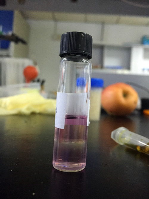 然后用0.5mL吸管吸取試劑A瓶中上層溶液約一半的量至試劑B瓶中;蓋緊B蓋塞子,上下翻轉(zhuǎn)10次(不可劇烈搖,避免乳化無(wú)法分層)使其混合,靜置至清晰分層。