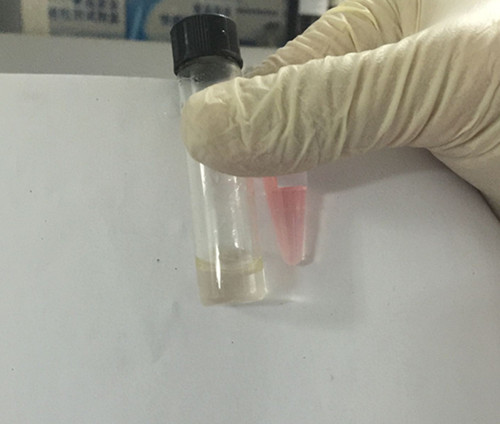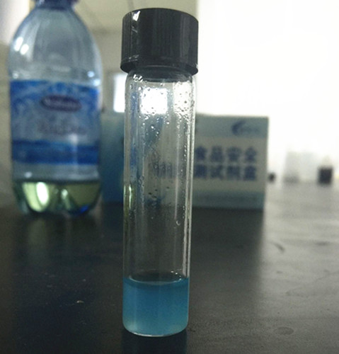 此樣品溶液較為渾濁,因此判定水分指標(biāo)為陽性。三項指標(biāo)中有一項不符,判定此油樣為地溝油。