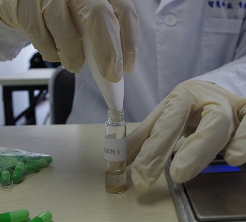 取0.5 g內容物取一支試劑A,將所取樣品加入管中,