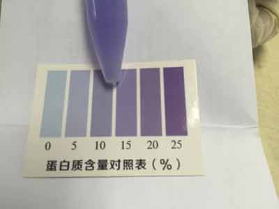 取4 mL顯色液加入比色管中,蓋上蓋,用力將奶粉全部搖溶,顯色3分鐘,在3~5分鐘內將比色管襯在白紙上與標準比色卡進行對比,找出與乳粉蛋白質標準比色卡上相近的色階,即為每100g乳粉樣品中蛋白質的含量。